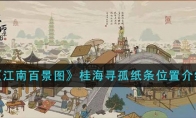 江南百景图桂海寻孤纸条在哪?在游戏内很多玩家都想知道,桂海寻孤纸条的获取位置在什么地方。下面就让小编给大家带来《江南百景图》桂海寻孤纸条位置介绍,感兴趣的玩家一起来看看吧。《江南百景图》桂海寻孤纸条位置介绍第一张纸条→[桂海寻孤]第二张纸条→[舞塘垂钓]第三张纸条→[闹市孤萤]第四张纸条→[高山访阁]第五张纸条→[一二]望守独中之纷缤,路指三头桥伞缀以上就是《江南百景图》桂海寻孤纸条位置介绍的全部内容了,更多手游攻略请关注3DM手游网!