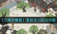 江南百景图春游活动怎么玩?《江南百景图》游戏中春游活动即将开启,那么要怎样玩呢?今天小编就给大家介绍一下《江南百景图》春游活动玩法攻略,有需要的小伙伴不要错过了。《江南百景图》春游活动玩法攻略1.全新角色即将入住江南小镇。2.补天石优惠兑换开启,可以优惠价格兑换金画轴。3.春游活动:全新建筑限时登场,可消耗补天石进行兑换。4.春游活动:活动期间充值一定数额的补天石,将额外获得「百草花园」。5.春游活动:春天第一菜,清香砌笃鲜。参与砌笃鲜制作活动,可获得丰富奖励。6.春游活动:居民们将戴上神秘装饰。7.娱乐建筑限时折扣即将开启,建筑「露天茶馆」限时优惠。8.桃花村限时组队副本开启,可邀请三两好友,共同前往桃花村探秘。 以上就是《江南百景图》春游活动玩法攻略,更多游戏攻略请持续关注3DM手游网!