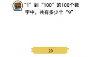 《脑洞大大大》第107关【1到100的100个数字中,共有多少个9】怎么过呢?《脑洞大大大》是一款脑洞非常大的全新益智闯关类手机游戏,下面小编给大家带来的是《脑洞大大大》第107关答案攻略介绍,还没有通关的小伙伴一起看看答案吧!>>>>小编推荐:《脑洞大大大》全关卡通关攻略汇总>>>>小编推荐:《脑洞大大大》春节攻略汇总大全《脑洞大大大》第107关答案攻略题目:1到100的100个数字中,共有多少个9答案:20仔细数一下吧,别忘了99是两个9以上就是小编带来的《脑洞大大大》第107关答案攻略介绍,更多关卡攻略,请关注3DM手游网!