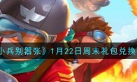 《小兵别嚣张》手游1月22日周末礼包兑换码是什么,在哪里领取呢?下面小编就给大家带来了《小兵别嚣张》1月22日周末礼包兑换码及领取地址方法介绍,想要领取的小伙伴一起来看看吧!>>>>《小兵别嚣张》礼包兑换码大全 《小兵别嚣张》1月22日周末礼包兑换码兑换码:J8ETQ 礼包码在哪领在邀请有礼界面填写礼包码即可领取对应的道具了!以上就是3DM小编整理带来的《小兵别嚣张》1月22日周末礼包兑换码,更多精彩内容,请点击关注3DM手游网,小编将持续为您更新!