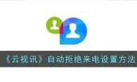 在云视讯开会的过程中,如果我们不想受到外部信息的打扰,比如电话来电等等,就可以前往设置开启自动拒绝来电,这样系统就会自动进行屏蔽了。那么云视讯怎么自动拒绝来电呢?下面小编就来为大家介绍一下云视讯自动拒绝来电的设置方法。云视讯怎么自动拒绝来电?1、首先进入云视讯界面点击我的选项。2、然后点击会议设置选项按钮。3、最后点击云视讯自动拒绝来电开关即可。以上就是小编带来的云视讯怎么自动拒绝来电?云视讯自动拒绝来电设置方法,更多相关资讯教程,请关注3DM手游网。