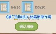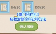 《掌门别挂机》是一款放置挂机题材的江湖武侠冒险风格的卡通游戏,很多小伙伴想知道秘籍潜修材料怎么获得呢?下面3DM小编就给大家带来了《掌门别挂机》秘籍潜修材料获得方法攻略介绍,感兴趣的一起看看吧!>>>小编推荐:《掌门别挂机》初始值得刷吗 >>>小编推荐:《掌门别挂机》无字天书获得方法 《掌门别挂机》秘籍潜修材料获得方法攻略秘籍潜修所消耗的材料根据秘籍类型以及潜修重数分为剑/气/掌/内/外五种,其中每个类型有蓝色和紫色两种材料,所有材料均可在江湖排行榜的切磋功能中获取。 >>>>《掌门别挂机》秘籍潜修作用一览 游戏简介:掌门别挂机是一款放置挂机题材的江湖武侠冒险风格的卡通游戏,开始你精彩的冒险之旅,建立一个属于自己的宗门,开宗立派招收门派,开创属于你