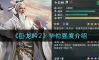 《卧龙吟2》游戏中华佗已经可以作为武将上场了,很多玩家想知道强度怎么样,那么今天小编就给大家介绍一下卧龙吟2华佗强度,有需要的小伙伴不要错过了。 《卧龙吟2》华佗强度介绍 兵种:智将——文官/弓兵三维:智力优秀,统率中等,武力偏弱技能:甘雨——群体连续治疗,三星后给兵力最少的队友附加死守效果(当前兵力越低,提升防御越高)。解析:华佗作为《卧龙吟2》第一治疗绝不为过,谁用谁知道。以上就是《卧龙吟2》华佗强度介绍,更多游戏攻略请持续关注3DM手游网!