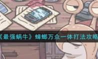 最强蜗牛游戏有许多玩家表示蟑螂万众一体的难度很大,相信还有很多小伙伴不是很清楚蟑螂万众一体怎么打,下面小编给大家带来最强蜗牛蟑螂万众一体打法攻略,感兴趣的小伙伴们一起来看看吧。《最强蜗牛》蟑螂万众一体打法攻略1、首先就是用香烧蟑螂,每次打飞机前可以点它4次。具体要杀多少只我也不是很清楚,我觉得按难度和属性推断,应该在该隐的前面;2、然后有几率出现一大群蟑螂(密恐福利哦);3、之后它们会合体成一只大蟑螂,共计会有五次,每次都会给克隆加速、1个灵魂、些许器官宝箱。在最后一次还会给一个叫做21474836470的绿色贵重物。以上就是小编带来的关于《最强蜗牛》蟑螂万众一体打法攻略的全部内容了,更多游戏攻略请持续关注3DM手游网!
