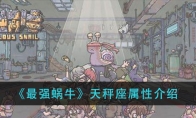 最强蜗牛天秤座怎么样?天秤座是游戏内的橙色sss级贵重物品,相信很多玩家对其属性还不是很了解。接下来就让小编给大家带来《最强蜗牛》天秤座属性介绍,感兴趣的小伙伴一起来看看吧。 《最强蜗牛》天秤座属性介绍一、基础介绍 名称:天秤座品阶:橙色SSS偏向:科技类贵重品 二、觉醒五围 人气58艺术66信仰77文化51科技110三、光环技能 蜗牛生命+1500蜗牛追击+150立即获得红色装备(天秤座圣器)每穿戴1件橙色及以上装备,蜗牛攻击+40每穿戴1件橙色及以上装备,蜗牛攻击+40(觉醒)四、获取途径 至尊贵重品奖励五、贵重品简介 看着这亮闪闪的图标,还有那别具一格的属性效果,再联想到获取的方式,本想为这个贵重品编个故事的我,陷入了沉思!面对此情此景,唯有赋诗才能表达我的心情:金樽清酒斗十千,玉盘珍羞直万钱!以上就是《