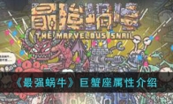 最强蜗牛巨蟹座怎么样?巨蟹座是游戏内的sss级橙色贵重物品,相信很多玩家对其属性还不是很了解。接下来就让小编给大家带来《最强蜗牛》巨蟹座属性介绍,感兴趣的小伙伴一起来看看吧。 《最强蜗牛》巨蟹座属性介绍一、基础介绍 名称:巨蟹座品阶:橙色SSS偏向:艺术类贵重品 二、觉醒五围 人气76艺术110信仰71文化50科技55三、光环技能 自动采集机,获得黑蝌蚪数量+10%自动采集机,获得白蝌蚪数量+10%每上阵100个兵种,部队生命+1600每上阵100个兵种,部队追击+160自动采集机,获得白蝌蚪数量+10(觉醒)四、获取途径 至尊贵重品奖励五、贵重品简介 看着这亮闪闪的图标,还有那别具一格的属性效果,再联想到获取的方式,本想为这个贵重品编个故事的我,陷入了沉思!面对此情此景,唯有赋诗才能表达我的心情:贵逼人来不自