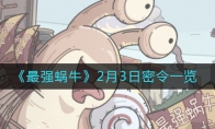 最强蜗牛2月3日密令是什么?在最强蜗牛中每日密令是获取大量奖励的关键,那么最强蜗牛2月3日密令是什么?今天小编给大家带来了《最强蜗牛》2月3日密令一览,感兴趣的小伙伴一块来看看吧。《最强蜗牛》2月3日密令一览一、2月3日最新密令 春节倒计时牛年就玩最强蜗牛二、兑换方式 1、点击右上角的设置2、点击设置界面的兑换码,输入兑换码领取奖励。以上就是《最强蜗牛》2月3日密令一览的全部内容,更多游戏攻略请持续关注3DM手游网!