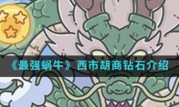 在最强蜗牛手游中西市胡商一颗钻石是什么呢?西市胡商会出售售价51600黑蝌蚪的一颗钻石,可以获得S级贵重物光之山巨钻。那么想知道西市胡商钻石详情介绍的就跟随小编一起来看看吧。西市胡商钻石介绍:一、商品介绍贩卖者:西市胡商商品介绍:一颗钻石售价:51600黑蝌蚪商品详情:S级贵重物光之山巨钻二、西市胡商1、活动期间(10月16日-11月5日),每天会有西市胡商来访,玩家可在家园信箱中查看胡商来信。2、回复胡商信件后,胡商会向蜗爷们兜售一种商品,各位蜗爷可自行选择是否购买。3、西市胡商的商品,包含贵重品和多种珍稀资源。具体内容,请蜗爷们在游戏内体验。4、早上5:00后登录游戏,即可触发西市胡商来访。三、注意事项同意或拒绝上一次西市胡商的兜售后,才能触发当日西市胡商的来信。以上就是小编整理的最强蜗牛西市胡商钻石介绍,