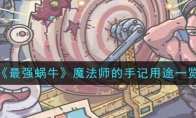 最强蜗牛游戏中魔法师的手记是小札魔匣封印事件中获得的道具,相信还有很多小伙伴不是很清楚魔法师的手记是什么,有什么用。下面小编给大家分享一下最强蜗牛魔法师的手记用途一览,感兴趣的小伙伴们一起来看一看吧。 魔法师的手记用途一览【道具介绍】 名字:魔法师的手记作用:使用之后可以获得一个专属密令获取途径:小札魔匣封印事件 【获取流程】 1、在第三次完成对话的时候可以解锁第三件事情,那就是得到20道封印,玩家每观看一个广告就可以解锁一个封印,把20个封印都解锁了就可以获得1根栴檀以及解锁一个新的封印宝箱。 2、新的宝箱有12道封印,玩家每观看一次广告都可以解锁一个封印,把封印全部解锁后可以得到一根栴檀及解锁一个更新的封印宝箱。 3、更新的宝箱有8道封印,玩家每观看一次广告都可以解锁一个封印,把封印全部解锁后可以得到一支香