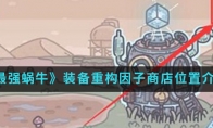 在最强蜗牛手游中装备重构因子商店在哪里呢?装备重构因子商店需要有装备重构因子,不然的话找不到界面。那么想知道装备重构因子商店位置的就跟随小编一起来看看吧。 装备重构因子商店位置介绍: 一、位置介绍 1、进入游戏主界面,点击右上方的周活动图标。 2、进入周活动界面,选择左下方的装备构成器。 二、注意事项 开启装备构成器界面需要有装备重构因子,否则找不到界面。以上就是小编整理的最强蜗牛装备重构因子商店位置介绍,想知道更多相关资讯攻略的请关注3DM手游网。