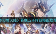 《三国志幻想大陆》游戏中新魏五子阵容以魏国角色为核心,搭配于禁、张辽、诸葛果、豪刃曹操、乐进、曹丕。那么今天小编就给大家介绍一下三国志幻想大陆新魏五子阵容搭配推荐2022,有需要的小伙伴不要错过了。 《三国志幻想大陆》新魏五子阵容搭配推荐2022 1、阵容推荐:于禁、张辽、诸葛果、豪刃曹操、乐进、曹丕。2、核心思路:面对灭队和脏水都能有不错的表现,前期依靠乐进进行输出压制血量,后期依靠张辽扫尾收割。3、缺点:比较惧怕火烧阵容,同时现在腾蛇的出现对于乐进的压血量任务也多了几分影响。4、灵宠:①主站:玄武、夫诸。②助战:穷奇、玄武、夫诸、白虎。以上就是《三国志幻想大陆》新魏五子阵容搭配推荐2022,更多游戏攻略请持续关注3DM手游网!