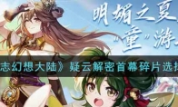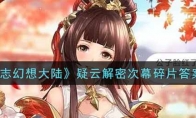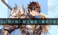 《三国志幻想大陆》游戏中疑云解密终幕碎片问题是“崔珍珍和崔昱的真实关系是什么”,正确答案就是亲兄妹。那么今天小编就给大家介绍一下三国志幻想大陆疑云解密终幕碎片答案分享,有需要的小伙伴不要错过了。 《三国志幻想大陆》疑云解密终幕碎片答案分享 1、崔珍珍和崔昱的真实关系是:未来的夫妻、表兄妹、无血缘关系、亲兄妹、堂兄妹2、正确答案:亲兄妹,根据剧情可以得出他们之间的关系就是亲兄妹,大家可以仔细的再去走一遍剧情。3、处理凶器这个我大概率不选是因为我的主观推测潘凤并没死,只是离开了王家庄,我的推测点是那瓶白色药粉,蒙汗药;4、伪装案发时间和制造不在场证明是一样的,都不是这次离开的目的,上面我分析得很多了,不再细说;5、拉肚子这项如果要选的话,就会变成黄盖是被茶里的药造成的,那么白色药粉就会变成泻药,而要做这个事的唯一原