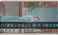 《只愿君心似我心》这是一款古代风格的益智解谜游戏,游戏中玩家需要在各种场景下寻找道具和线索才能推动游戏的发展进入下一关卡,那么接下来小编为大家带来第3关卡图文攻略,一起来看看吧。 《只愿君心似我心》第3关卡图文攻略 1.点击右边的金元宝2.点击女人的玉佩3.点击青衣男的补丁4.点击青衣男手中的盒子以上就是小编整理的关于《只愿君心似我心》第3关卡图文攻略的全部内容,更多游戏攻略请持续关注3DM手游网!