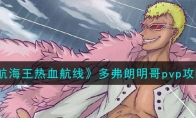 航海王热血航线是一款十分火爆的手游,其中多弗朗明哥是航海王热血航线中的传奇力属性伙伴,很多玩家还不知道多弗朗明哥PVP怎么玩,所以小编给大家带来了航海王热血航线多弗朗明哥PVP连招技巧攻略,希望对感兴趣的玩家有所帮助,大家一起看一看吧。 航海王热血航线多弗朗明哥pvp攻略*PVP攻略 1. 【超过鞭线】释放速度快,范围大,非常适合远距离起手。2. 【超击绞鞭】高浮空,适合近距离或者中远距离起手。3. 【降无赖线】的瞬移攻击释放速度迅速,且携带霸体和破霸,是非常适合用于起手使用的技能。4. 特殊形态一技能适合在敌人进入连击保护后用于逼闪或者起手使用。5. 特殊普攻可以让多弗拉门戈保持长时间的滞空形态,这个形态下,可以拉远与敌人的距离,也可以用于攻击对空能力薄弱的角色。*激斗技推荐 【进阶·寄生线环切】竞技场的节奏