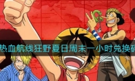 兑换码:航海王周末一小时 航海王热血航线狂野夏日周末一小时兑换码分享航海王热血航线最新兑换码:航海王周末一小时 这个兑换码是通用兑换,全平台都可以领取,奖励包括狂野夏日版本头像框和对话框奖励。兑换码也是有时间限制的,还没有领取的小伙伴们赶紧去使用吧。