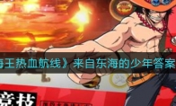 航海王热血航线来自东海的少年答案是什么?《航海王热血航线》游戏中玩家们不清楚来自东海的少年的答案是什么,那么今天小编就给大家介绍一下航海王热血航线来自东海的少年答案。《航海王热血航线》来自东海的少年答案介绍1.布鲁克~是爆炸头,会演奏小提琴,喜欢喝茶2.撒花布~长鼻子,性格胆小,擅长用弹弓3.路飞~生日5月5日,喜欢吃肉,来自风车村以上就是《航海王热血航线》来自东海的少年答案介绍,更多游戏攻略请持续关注3DM手游网!