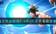 《航海王热血航线》游戏中的海上伙伴猜猜猜活动是新上线的活动,小伙伴都知道6月4日水手答题答案是什么吗?今天小编就给大家介绍一下航海王热血航线6月4日水手答题答案大全,有需要的小伙伴不要错过了。《航海王热血航线》6月4日水手答题答案大全【答案大全】 这位音乐家“是爆炸头”,“会演奏小提琴”,“喜欢喝茶”,还经常发出“的嘴嘴嘴”的笑声。答案是:布鲁克这位来自东海的少年“删除用弹弓”,“性格胆小”,“长着长鼻子”。答案是:撒谎布这为活泼的少年“来自风车村”,“喜欢吃肉”,“生日是5月”答案是:路飞以上就是小编整理的《航海王热血航线》6月4日水手答题答案大全的全部内容啦,更多游戏攻略请持续关注3DM手游网!