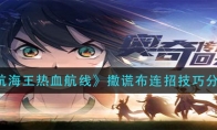 航海王热血航线撒谎布怎么连招?在游戏内很多玩家都想知道,撒谎布有哪些连招方法。下面就让小编给大家带来《航海王热血航线》撒谎布连招技巧分享,感兴趣的玩家一起来看看吧。 《航海王热血航线》撒谎布连招技巧分享【撒谎布实战连招技能】 撒谎布连招: 闪避+撒谎布5吨铁锤·粉碎+普攻+必杀·火炎星+闪避+普攻。 【撒谎布基础连招技能】 撒谎布连招一: 普攻+闪避+普攻。 撒谎布连招二: 必杀火·炎星+闪避+撒谎布5吨铁锤·粉碎+普攻。 以上就是《航海王热血航线》撒谎布连招技巧分享的全部内容了,更多手游攻略请关注3DM手游网!
