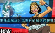 《航海王热血航线》游戏中的风车村的知识问答是一个隐藏剧情,小伙伴都知道风车村的知识问答答案是什么吗?今天小编就给大家介绍一下航海王热血航线风车村的知识问答答案介绍,有需要的小伙伴不要错过了。《航海王热血航线》风车村的知识问答答案介绍触发条件: 需要玩家达到22级,开启世界探索玩法后。踏上“风车村”地图,玩家会发现很多带有紫色感叹号的NPC,这些就是新增的“隐藏剧情”。在与旅行家对话后,即可开启“风车村的知识问答”。答案选择: 1、第一道题“风车村有一间酒馆,里面的老板是一位女性,她叫做”——此答案选择“卷乃”。2、第二道题“曾经有一名大海盗在这里逗留过一段时间,他是?”——此答案选择“杰克斯”。3、第三道题“风车村附近海域存在一名海中王者,它叫做?”——此答案选择“近海之王”。以上就是小编整理的《航海王热血航线
