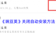 打开豌豆荚软件,在首页点击右上角的图标进入设置;接着,在设置页面中找到并点击“自动安装应用”选项;最后,将自动安装应用后面的按钮关闭即可。这样,豌豆荚就不会再自动安装应用了,你可以根据需要手动选择安装。豌豆荚怎么关闭自动安装?1、打开豌豆荚软件,在首页点击右上角的图标进入2、进入之后,找到设置进入3、在设置页面,点击自动安装应用后面的按钮关闭即可。以上就是小编带来的豌豆荚怎么关闭自动安装?豌豆荚取消自动安装方法,更多相关资讯教程,请关注3DM手游网。