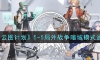 《少前:云图计划》游戏中的5-5局外战争暗域模式是一个难度比较大的关卡,相信还有很多小伙伴不是很清楚5-5局外战争暗域模式怎么过,那么今天小编就给大家介绍一下少女前线云图计划5-5局外战争暗域模式通关攻略,有需要的小伙伴不要错过了。《少前:云图计划》5-5局外战争暗域模式通关攻略【通关攻略】 5-5 局外战争缠枝体验本!本关地形本关是偷井盖关卡,助战建议选缠枝缠枝和坦克按图中所示的站位就可以射到屏幕中所有敌人注意用15费技能给缠枝充能,保证AOE永续本关无法用拉姆一炮打掉召唤阵,9000+战力拉姆奥义也只能打半血输出终端本关为双井盖关卡本关需要调整敌人和缠枝的位置来保证缠枝能一次射到两个井盖因此坦克下方不要放人调整敌人的位置需要靠跳刀调整克罗琦的位置本关需要等待井盖召唤出一些敌人后用跳刀调整缠枝的位置,保证缠枝