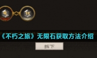 《不朽之旅》游戏中无限石怎么获得?无限石在游戏中的作用非常重要,它可以用来兑换宝石和重铸装备孔,很多玩家在游戏中表示不知道无限石怎么获得,那么接下来小编为大家带来《不朽之旅》无限石获取方法介绍,一起来看看吧。 《不朽之旅》无限石获取方法介绍获取途径: 矿洞产出/拆除装备孔位 主要功能: 兑换宝石/重铸装备孔无限石最主要的获取途径是矿洞产出,另外如果你已经持有镶嵌上宝石的装备了,那么拆下已经镶嵌的宝石,也可以得到无限石,不过拆下宝石的时候最好慎重一些,因为一旦拆掉,宝石便会损毁。宝石兑换功能 当拥有带孔装备后,进入“地图”-“兑换”页面,通过无限石兑换宝石,随后便可以把这些宝石镶嵌到装备中。如果你对装备的孔不满意,那么也可以在“重铸”功能中改变装备的孔位,要注意已经镶嵌宝石的装备,需要将宝石拆掉后才可进行“重铸”