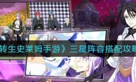 《转生史莱姆手游》中三星阵容搭配推荐S白佬,S静,S哥布塔,S苍影,A红丸,那么今天小编就给大家介绍一下转生史莱姆手游三星阵容搭配攻略,有需要的小伙伴不要错过了。 《转生史莱姆手游》三星阵容搭配攻略S白佬/S静/S哥布塔/S苍影/A红丸 三星阵容就是在不死人的情况下,输出非常的厉害阵容使用方式:想好配火通常盟王第二回合下黑闪电因此第1.3回合也要有人担当主输出S白佬作为第一回合主输出(配合连携可以让对面最烦人的角色半血)S苍影/A红丸作为第三回合主输出(苍影靠前两回合叠分身第三回合可以有450%输出,红丸只要连炸超过两次伤害高过苍影,且如果不保证对面会被连炸,可以先用白佬触发连携打残一个,确保红丸连环炸)以上就是《转生史莱姆手游》三星阵容搭配攻略,更多游戏攻略请持续关注3DM手游网!