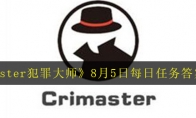 《Crimaster犯罪大师》8月6日每日任务正确答案是什么?很多小伙伴都在寻找最新的每日任务正确答案,回答正确即可获得积分奖励,积分在游戏中将直接影响玩家的排名情况,玩家想要排名高,就必须获得更多的积分,那么接下来小编为大家带来《Crimaster犯罪大师》8月6日每日任务答案介绍,一起来看看吧。 《Crimaster犯罪大师》8月6日每日任务答案介绍小编推荐:《crimaster犯罪大师》每日任务答案汇总一览 1、据可靠消息,一个毒犯将从缅甸来到英国 正确答案:C(布朗) 答案解析: 他说半小时要喝一次,机程不止半小时,他一定要喝药,但飞机上不能携带大瓶液体,所以是布朗。2、在一个现代化农家小院里 正确答案:D(井里) 答案解析: 因为是会计,肯定和数字有关,又提示是现代化农场,现代化的象征之一便是电脑