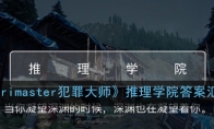 《crimaster犯罪大师》推理学院正确答案是什么?很多小伙伴是不是都在寻找推理学院中的正确答案呢,那么接下来小编为大家带来《crimaster犯罪大师》推理学院答案汇总,一起来看看吧。《crimaster犯罪大师》推理学院答案汇总目前这个玩法还没有开放,最新案件答案本站会第一时间更新,感兴趣的玩家关注本站即可。一、crimaster犯罪大师产品Crimaster犯罪大师是一款侦探解密类游戏,自3月份上线,版本更新次数近20次,1.0版本为基础版仅有案件推理版块,1.1版本后增加社区功能,目前产品架构如下:(1)真实案件:内有真实案件供用户探讨,包含世界首例成功劫机案、南大碎尸案、蓝可儿意外死亡事件等11个案件,最高浏览数达187万,其余浏览数在60-100万。进入真实案件,游戏提供了案情简介、现场勘验、侦查