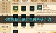 梦想新大陆普通鱼类有哪些?《梦想新大陆》游戏中普通鱼类其实有很多,可能有些小伙伴不知道有哪些?那么今天小编就给大家介绍一下梦想新大陆普通鱼类的相关内容,感兴趣的小伙伴不要错过了。《梦想新大陆》普通鱼类介绍炮弹鱼一级鱼类,身形似炮弹,腹部有花纹。可以在海螺湾兑换获得金币或者家族上交获得钻石。扁刺豚二级鱼类,全身长满硬刺,腹部有一大大的气囊。可以在海螺湾兑换获得金币或者家族上交获得钻石。金枪鱼三级鱼类,呈纺锤形,稍侧扁,尾部较长而细。可以在海螺湾兑换获得金币或者家族上交获得钻石。黄金吊四级鱼类,通体金黄,前方软条较后方延长,呈伞形。可以在海螺湾兑换获得金币或者家族上交获得钻石。狮子鱼五级鱼类,体表黄色,布有红色至棕色条纹,性格孤僻,喜独居。可以在海螺湾兑换获得金币或者家族上交获得钻石。孔雀鱼六级鱼类,也称为凤尾鱼,