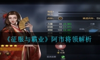 2021-04-09 阅读全文征服与霸业阿市怎么样?很多小伙伴对于这个将领的玩法不太了解,那么小编就给大家介绍一下,下面小编给大家带来《征服与霸业》阿市将领解析,还不清楚的小伙伴赶紧来看看吧。《征服与霸业》阿市将领解析【技能分析】阿市的自带技能为【心迩】,属于主动型技能,能够在战斗中以50%的概率发动,具体效果为:准备1回合,对己方群体两人恢复一定兵力(恢复率初始165%,满级300%),并使其受到指挥技能的伤害降低一定百分比(初始17%,满级35%),持续1回合。从技能我们可以看出,阿市能走的路线只有两条,一是2、3技能带辅助,配合1技能打团队增益,二是2、3技能带恢复,走纯奶妈路线。考虑到阿市属于辅助型将领和医师型将领,所以建议在为其搭配二三技能的时候选择辅助型技能,提升阿市的辅助能力,这里推荐【荣光新政】、【浮叶】等。其中,【荣光新政