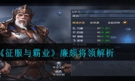 征服与霸业廉颇怎么样?很多小伙伴对于这个将领的用处不太清楚,那么小编就给大家介绍一下,下面小编给大家带来《征服与霸业》廉颇将领解析,还不清楚的小伙伴赶紧来看看吧。《征服与霸业》廉颇将领解析一、 【将领解析】廉颇是游戏中九州阵营的一名五星级物理输出型将领,其统御值为3,精通兵种为步兵系。廉颇虽然为五星将领,但各项属性均无法与高统御的五星将领相比,在同级别将领中属于较低水平,说明其物理输出能力有限。但值得注意的是,廉颇的速度还算不错,这有利于其在战斗中先行动,这里推荐大家主加速度。二、 【技能分析】廉颇的自带技能为【老当益壮】,属于追击型技能,发动概率固定为40%,在技能触发之后,会使目标的谋略属性降低一定点数(受技能等级影响,初始降低32点,满级降低50点),并且有一定几率(初始33%,满级60%)使目标陷入【计