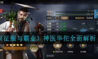 征服与霸业神医华佗怎么样?很多小伙伴对于这个将领的能力以及搭配不太了解,那么小编就给大家介绍一下,下面小编给大家带来游戏中最强的医师型将领华佗的全面解析,还不了解的小伙伴赶紧来看看吧。《征服与霸业》神医华佗全面解析【技能分析】华佗作为游戏中强力的医师型将领,其自带技能【悬壶济世】,战斗开始后的前4回合,在我方全体受到伤害时,有60%的几率恢复兵力,满级概率高达到86%。可以说是一个很强的恢复技能,能大大增强了队伍的续航能力。华佗的二技能可以再搭配一个恢复型技能【医心】,战斗开始后的前4回合,每回合恢复己方群体2人兵力,恢复率为70%(受谋略影响,每10点谋略属性额外提升1.5%),满级高达124%,还有44%-80%的概率驱散控制效果。【医心】是一个发动概率100%的技能,意味着每回合队伍都可以恢复大量的兵力。