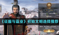 2020-11-10 阅读全文《征服与霸业》游戏中初始文明怎么选择?对于新手玩家来说可能刚刚进入游戏的初始文明选择就已经被难倒了,那么游戏中文明有什么讲究呢,接下来小编为大家带来《征服与霸业》初始文明选择推荐,一起来看看吧。 《征服与霸业》初始文明选择推荐 初始文明分为五个,分别为:华夏、扶桑、罗马、不列颠、法兰西。【华夏】 首先是华夏,华夏文明具有征兵时间缩短3%,屯垦收益提高3%,弓兵将领防御+10这三条初始属性。我们来具体分析一下,在每个赛季开始的时候,都会有一个新手保护期,这个阶段玩家的任务就是快速发育,包括城建,资源地开拓,将领升级等,那么征兵时间的缩短无疑能够加快我们占领土地和将领练级的速度,进而让我们的城建速度也得到了提高;另外,前期高密度的城建势必会造成资源短缺,此时要进行必要的屯垦能够弥补资源缺口;弓兵将领防御+10能够减