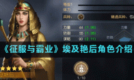 《征服与霸业》游戏中埃及艳后将领怎么样?在征服与霸业游戏中有着很多不同类型的将领,当然不同类型的将领有着专属的属性,其中埃及艳后很多小伙伴表示不知道怎么样,那么接下来小编为大家带来《征服与霸业》埃及艳后角色介绍,一起来看看吧。《征服与霸业》埃及艳后角色介绍【技能介绍】 埃及艳后自带技能【蛊惑人心】。技能效果为:对敌方单体发动一次谋略攻击,伤害率为107%,满级为170%,并使其陷入【蛊惑】状态(普通攻击和技能攻击必定选择己方目标),持续一回合。【蛊惑】可以说是游戏中非常强的控制技能之一,让敌方将领自相残杀,被【蛊惑】的将领伤害,控制全部输出在自己的队友上,而我方将领则不会受到他的攻击。在己方不收到伤害的同时,又有效地打击了敌方。【技能搭配】 从埃及艳后的主技能可以看出,她可以搭配上一个高伤害的AOE技能,增加伤