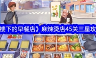 《楼下的早餐店》是款有温度的餐厅经营游戏,如深夜食堂那样,一边为客人烹饪美食,一边同他们分享遭遇,故事由此慢慢展开!游戏麻辣烫店三星的难点在于串串的位置不能固定,那么具体怎么过关呢?下面是3DM小编给大家带来的《楼下的早餐店》麻辣烫店45关三星攻略,感兴趣的小伙伴们一起来看看吧。《楼下的早餐店》麻辣烫店45关三星攻略麻辣烫店三星的难点在于串串的位置不能固定,只要把菜品放的位置固定了,就会好很多。推荐大家这种摆放方法,给了客人菜品后,马上补充相应的串,保证煮锅里的串的位置数量不变。根据需要虾或蘑菇的多少,可以调整虾和蘑菇的数量,如下图面煮好了马上放到碗里煮下一个,虽然只有一个但是也足够用了。我用这种方法42-45全部三星了,而且不需要什么技巧,多练几次就可以了以上就是3DM小编整理带来的《楼下的早餐店》麻辣烫店4