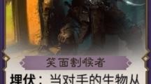 沼泽潜猎者是在黑水中的恐怖捕猎者,用自己的强大伪装能力以及凶悍的攻击手段,让猎物无处可逃,所以见到黑水还是远离吧。它是《秘境对决》中的一张黑色生物卡。沼泽潜猎者 费用 4攻击力 3血量 2能力 隐匿每当其他生物死亡时,获得隐匿。背景故事 在沼泽的黑水里隐藏着的捕猎者,静静等待着猎物的到来。奥术师陶蜜儿在隐居期间写下的《自然笔记》记述了这种奇妙的怪物:「日光微弱的时候,无论是动物还是人类都自然地受到「发光的芦苇」吸引,前去接近沼泽。只有见到沼泽潜猎者的獠牙和巨口才知道后悔。」她认为这种生物与蠕虫有些相近,一直尝试摘取其发光体作为融合生物之用。