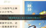 弹壳特攻队兑换码2023年10月2日礼包是秋风清秋月明。弹壳特攻队是一款非常刺激的多人竞技枪战射击类游戏,这款枪战游戏拥有上十张不同风格的地图,并且还有海量的武器选择,玩家可以在自己的武器库中挑选最擅长的武器开启竞技战斗,既有单人生存模式,也有多人竞技模式,可以根据自己的喜好进行选择。游戏中大家可以使用兑换码换取资源,今天小编给大家带来了《弹壳特攻队》10月2日兑换码领取2023分享,想要兑换免费资源不要错过!>>>>>小编推荐:《弹壳特攻队》兑换码大全2023 《弹壳特攻队》10月2日兑换码领取2023兑换码:秋风清秋月明 有效期到:2023年10月26日领取规则:同一个兑换码,每个角色ID仅限兑换一次,全渠道通用。 永久兑换码:DLBW2233、biliygo1、biligx