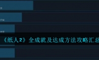 《纸人2》是一款能够给你电影感受的恐怖惊悚冒险的游戏,游戏中成就很多,这些成就怎么解锁呢?下面3DM小编就给大家带来了《纸人2》全成就及达成方法攻略汇总介绍,感兴趣的一起看看吧!>>>>小编推荐:《纸人2》全角色结局汇总 >>>>小编推荐:《纸人2》游戏剧情解析 《纸人2》全成就及达成方法攻略汇总成就 达成方法 恶作剧被金盏抢走了发条闹鬼被龙胆操作纸人吓唬秘密房间打开了绣房中的暗道金盏封印金盏龙胆封印龙胆弱点攻击对任意敌人进行弱点攻击枪在手拿到火枪殷凌与殷凌展开面对面的战斗无限回廊走出无尽的幻境重返现实从镜中世界逃回现实梧枝封印梧枝殷夫人使殷夫人得到了解脱殷老爷目睹殷老爷自杀真相大白从赵画师口中得知了所有真相幻影之战击败殷夫人的幻影分身虎口脱险从殷老爷和殷夫人手