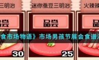在繁荣美食市场物语手游中市场男孩节展会食谱有哪些呢?游戏中有展会玩法,展会中有市场男孩节展,那么想知道市场男孩节展会食谱汇总的就跟随小编一起来看看吧。市场男孩节展会食谱汇总介绍:泡芙+双叶豆杯子蛋糕+南瓜蛋糕卷+肉干泡芙+番茄+牛油果杯子蛋糕+乌贼蛋糕卷+大蒜杯子蛋糕+章鱼蛋糕卷+鳕鱼子+辣椒泡芙+柚子+棉花糖蛋糕卷+柠檬+桃子杯子蛋糕+猪蹄+栗子泡芙+巧克力+冰泡芙+高级咖喱+高级芒果杯子蛋糕+高级海胆+高级甜瓜蛋糕卷+高级螃蟹+蘑菇法式烤鱼+双叶豆油炸食品+南瓜腌泡汁+番茄+牛油果油炸食品+乌贼+生姜法式烤鱼+辣椒+柠檬油炸食品+鳕鱼子+樱腌泡汁+柚子+桃子腌泡汁+茄子+白薯法式烤鱼+棉花糖法式烤鱼+猪蹄+蘑菇腌泡汁+巧克力+冰油炸食品+栗子腌泡汁+高级芒果+高级甜瓜法式烤鱼+虾+高级咖喱油炸食品+高级海胆