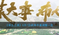 《率土之滨》在假日结束后,将于5月7日上午10点对全服进行例行维护,主要是对一些武将及战法做出平衡调整,对于不了解的小伙伴,具体内容就来看看下面的相关内容吧。《率土之滨》5月7日武将平衡调整一览【5星·魏·邓艾】“险途暗渡”满级效果调整为 对敌军群体发动一次攻击(伤害率150%),并使其陷入动摇状态,每回合产生逃兵(伤害率80%),持续1回合【5星·魏·张郃】及SP【5星·魏·张郃】“以逸待劳”满级效果调整为 恢复自身一定兵力(恢复率200%),并对敌军群体发动一次攻击(伤害率125%)【5星·汉·袁绍】“四世三公”满级效果调整为 使我军全体分别对距离5以内的敌军单体发动一次攻击(伤害率150%),每次目标独立判定【5星·汉·卢植】 “将倾之柱”发动率由30%提升至35%【5星·汉·卢植】及SP【5