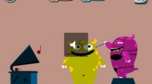 《100种蠢蠢的死法》第六十七关玩法攻略,这一关难度不大,我们只需要把手机设备的音量调到最轻,绿食怪就会安然的睡着。旁边紫色的怪兽就会把它戳死。