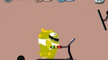 《100种蠢蠢的死法》第七十关玩法攻略,这一关挺简单的,我们只需要一直增加跑步机的速度,绿食怪这种一根筋的根本不会自己下跑步机,所以它脚步跟不上以后就会活生生摔死。