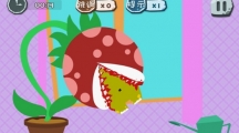 《100种蠢蠢的死法》第二十四关玩法攻略,这一关先拉开两侧窗帘,然后再把地上食人花种子放在左侧花盆里,用右侧水壶浇水,等它长大以后点击绿食怪就可以过关了。