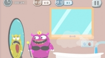 《100种蠢蠢的死法》第三十四关玩法攻略,这一关看得出绿食怪好像很想睡觉,是不是死累了?还没完呢,这一关让它再死一次清醒清醒。首先把绿食怪放进这个门里,再把五个字中的“未”字擦掉,然后大门会关闭。最后我么就会看到它成了一堆灰。。。