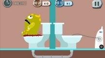 《100种蠢蠢的死法》第四十一关玩法攻略,这一关要让绿食怪在wc的时候折腾死他,说实话有点残忍。。。不过为了通关我们必须这么做。首先你需要用两根手指按住下方管道的两端,即和马桶对应的那块,然后我们再将其旋转对调。然后打开右边机器开关,然后呵呵。。。爆菊!