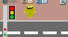 《100种蠢蠢的死法》第五关玩法攻略,这一关略微考验一下同学们的操作时机,玩法是绿灯让绿食怪到马路中间然后按红灯,让他被车撞,不过它看到红灯也会后退,所以需要把握时机。