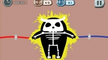 《100种蠢蠢的死法》第六关玩法攻略,这一关看到两根电线相信大家都明白要怎么办了吧?没错!这一关就是要把绿食怪电死,点击它的两只手让他拿起电线,然后你懂的。