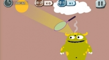 《100种蠢蠢的死法》第十关玩法攻略,左下角躺着的那个是放大镜,我们把天上的云挪开以后就可以看到太阳了,然后我们就用放大镜聚焦阳光吧绿食怪烤熟。