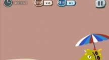 《100种蠢蠢的死法》第十三关玩法攻略,这一关不是要让绿食怪晒死在沙漠里,重点是在这把遮阳伞上。点击遮阳伞再点一下绿食怪,就可以顺利的把它戳死了。
